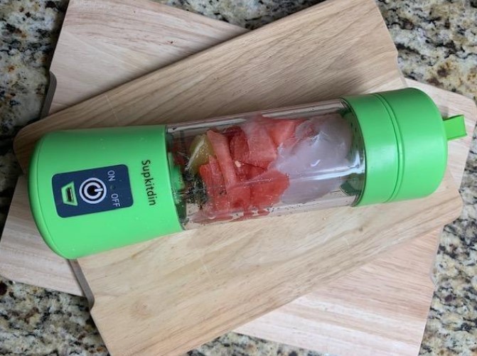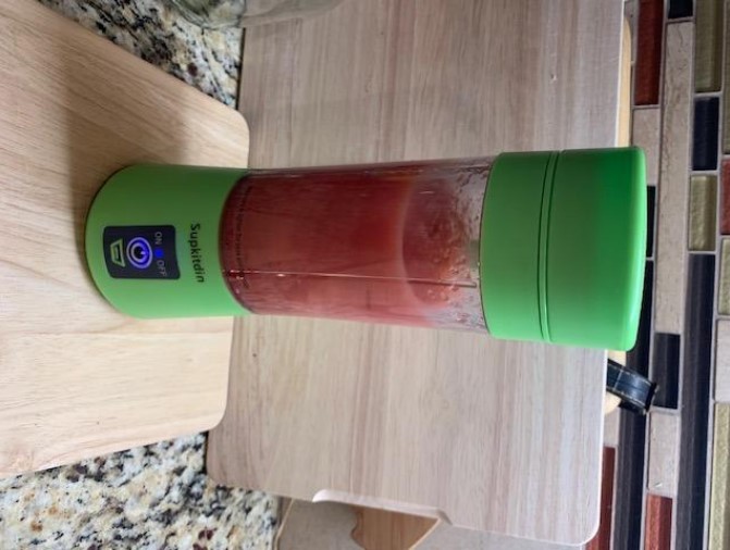 I received my portable blender in the mail today and the first thing I did, was clean it really good and made a smoothie with my daughter. This is a great blender for the price! It blends nicely. Dont over fill the blender due to it being a smaller blender, it'll have trouble blending all the fruit. My daughter absolutely loves this portable blender. its a money saver, blenders can be super expensive. Overall, its awesome. I highly recommend!