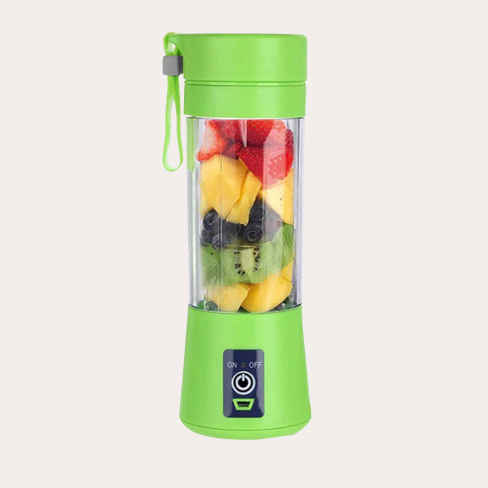 Our 13-Ounce USB-Rechargeable Fruit Blender is powered by a built-in, rechargeable 2000mAh 3.7V. Each blender comes with a USB cord for your convenience: you can charge your blender up from your laptop, a portable power bank, car port charger, or outlet charger. It’s just the ultimate convenience for you to enjoy your favorite drink wherever you are.