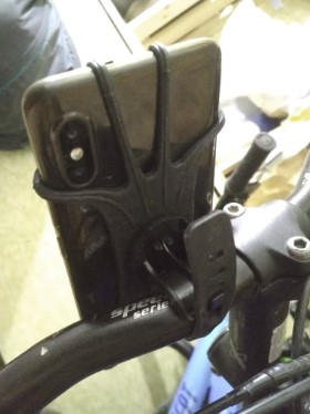 This is a decent little phone mount that is pretty cheap. It grips the handlebars tightly and won’t fall towards or away from you while you ride. Being able to rotate the screen is a nice feature also. Face ID doesn’t work because of the silicone bands, but they seem sturdy enough. When you are on a bumpier road, your phone will flop around some, but I haven’t at all been worried that it was going to fall out. Overall, it’s pretty solid.