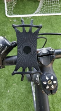 This mount is incredibly simple in design and installed in seconds. It feels sturdy. I like that the rubber bands don’t come in contact with the buttons on my phone and the description was accurate about securing a phone even with a protective case and pop socket. I would feel better about it if the claw grip wrapped all the way or at least a bit more around my handlebars , but it still feels nice and tight and secure so we’ll see what happens.