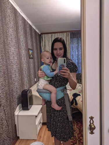I'm very happy! Eases the load on the back, and the child is satisfied! Even a pediatrician praised us that wearing a child on such a thing))