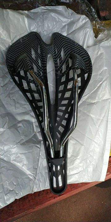 First, let me say that I have never found a really comfortable bike seat, except the super fat ones on exer-cycles and the chair-like one on my wife's recumbent bike. I'm an old guy with a mountain bike and city bike (not a road bike). I finally tossed my city bike seat into the box of other failures and decided to try one of this ilk. Real carbon fiber laminate seats of this type cost about $150. They are molded plastic. It seems that they believe that "carbon fiber" is a color, or that they can throw a few fibers into the molding press and use that as an excuse for the name. For sure, never buy one where the carbon laminate appearance is a grid painted onto the plastic. This one seems a reasonable step up from the really cheap junk. It's a little stiffer than I expected from the reviews, so my sit bones want padded bike shorts. Maybe it will fit better with time. Given the stress it gets, I hope that they put some chopped fiber into the plastic (not carbon fiber) to strengthen it. This is standard for injection molded parts. We'll see how it holds up...