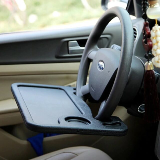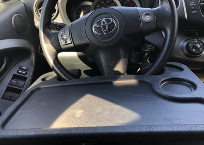 Measuring 11 inches across the steering wheel hold, our tray snugly fits the steering wheel of most modern cars. No balancing on your knees or anything. Whether you’re watching a movie to kill time or are finishing up a weekly report for work, our tray will support you until the end.