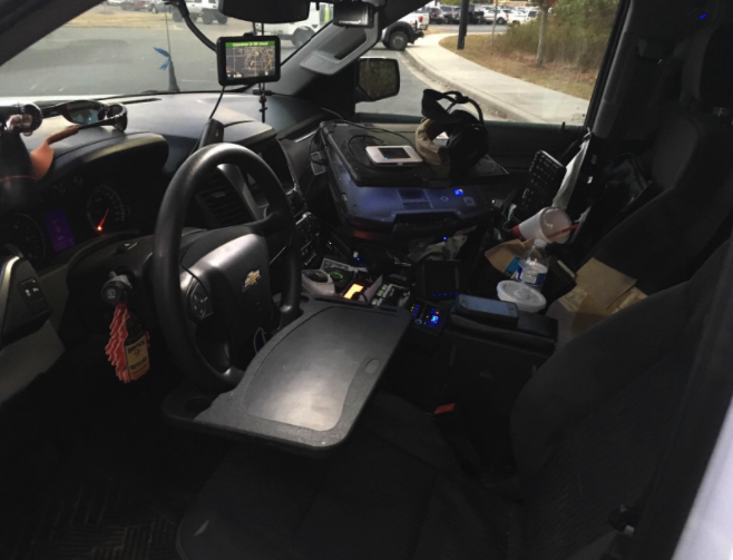 Multiple engraved slots for items such as soda cans, cups, and pens
