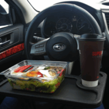 Not working? Then it’s probably meal time. Yeah, that’s right — flip this tray over and you get a full-on meal tray.Complete with a drink holder mold and place to hold your main meal, eat in peace wherever you are, whether on a solo road trip or long car drive somewhere. No more using napkins to create a makeshift eating space or dropping ketchup and fries all over your cup holder or center console.