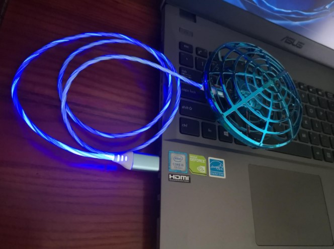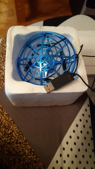 This charges up by USB port, and it was a gift for my grandson's birthday. So we very carefully took it out of the box to charge it up before we gave it to him. Actually, it already had a charge and worked just like the instructions said it would. This is a very nice drone for a kid, even the adults enjoyed it too. A nice indoor toy, safe because of the cage around the blades.