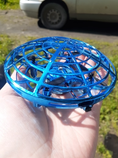 This was a stocking stuffer type present and I didn’t have much in the way of expectations. After using it, I’m surprised this toy isn’t more popular. After charging you turn it on and rock it back and forth for just a few seconds to calibrate it. Then toss it in the air and it takes care of itself. In an open room it moves around on its own and kids can control it with what looks like Jedi hand gestures. In a cramped room it can start acting like a fly on a window screen and bounce around until it loses control because the sensors over compensate. Even so, the propellers are contained inside the body and don’t get damaged or get thread or hair wrapped up in them like other drones. The battery only lasts for about 5+ minutes, but so does my toddler’s attention span, so it’s still a great little toy.