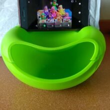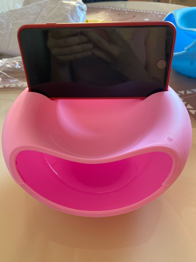 I got this mostly as a gag gift for my mother. She loves eating sunflower seeds while playing with her iPad. I was happy that her iPad mini fit because the pictures show a phone. Can’t really set it down when she has her iPad in it because it topples over but that doesn’t bother her. The only thing that really bothers me is that it was a little defective. The top piece and bottom doesn’t fit perfectly.