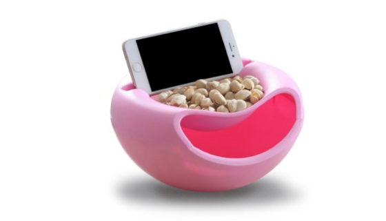 Its perfect for eating sunflower seeds which is why I got it for my mother who is a sunflower seed addict! The only thing that I didn’t like about it is that it is two levels that connect (the bowl in the bottom and the phone holder and smaller bowl in the top) did not like up and have a weird hanging edge that sticks out. Nevertheless it is still useful and a great gift which is why I’m giving it 5 stars!