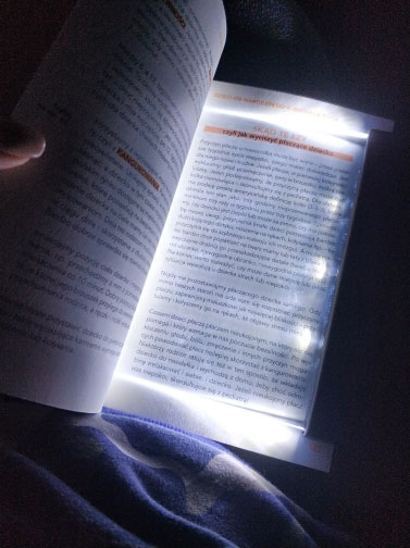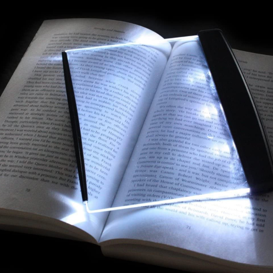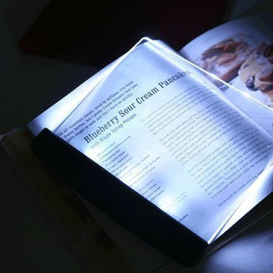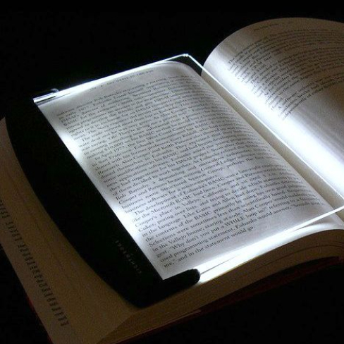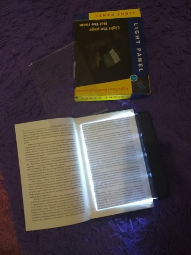 I like how it makes the page glow instead of having a hanging light above your book which is more noticeable in a room you wish to keep dark where others might be sleeping. A couple of things I was curious about... First, off I thought I might be able to place the panel behind the page I was reading so that it would glow thru essentially, but that did not work the best. You really need to place the panel ON TOP of the page you’re reading. But the good thing is you really don’t need to flip the panel from left to the right page, I found that keeping the panel on the right side it would still provide sufficient lighting to the left side. So you don’t have to move the panel as much. And for larger books, the panel may not cover the entire page but the lighting fans out so it will adequately illuminate the entire page so I found the size of the panel to be just fine. I really like this light :)