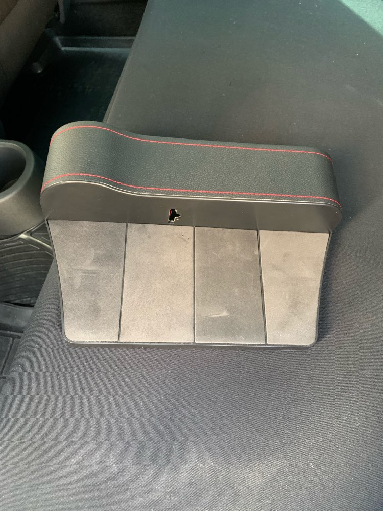 I love this gap filler, a nice addition to my car. Great fit. Not too big, not too small, and matches my leather seats. you can fit a can of soda, water bottle, cellphone, and miscellaneous items. Great quality product