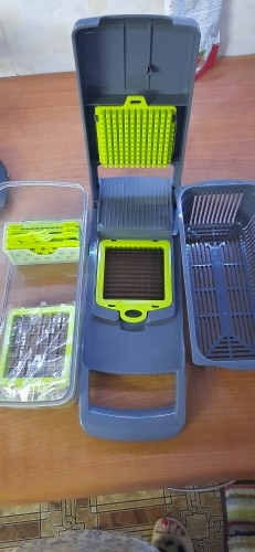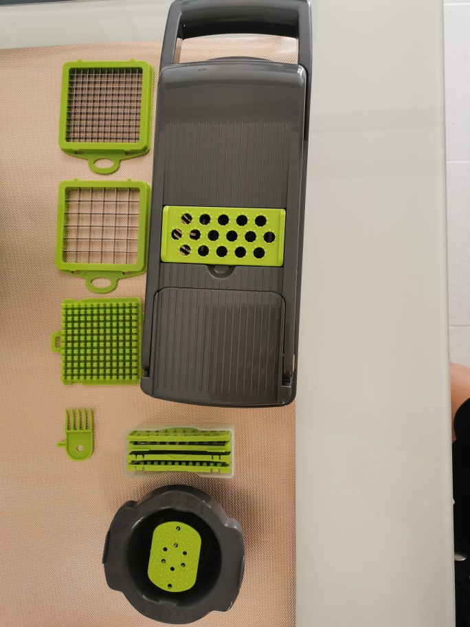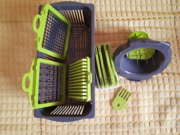 I am amazed at how quickly this veggie chopper has become part of my food preparation. I use it on a regular basis to chop carrots, radishes, cucumbers, zucchini, potatoes, cooked beets, and turn one or a combination of them into ready-to-eat or ready-to-cook form. It's pretty sturdy, too. The blades are quite sharp, necessarily so, so take caution when handling them. On my unit the tiny two-part plastic slider that locks the blades in place came apart and I need to figure out how to reinsert it. But the unit works quite well without this piece. Much recommended.