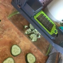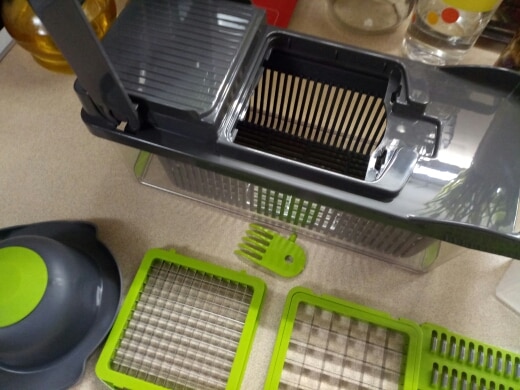 So excited to get this today. Used it to slice potatoes for frying and easily changed the blade to chop a variety of vegetables for a chopped salad — it worked great. Next test will be to chop a bunch of onions for the freezer. It was easy to clean and won’t take up much space to store in a handy kitchen drawer. It appears to be sturdy and I hope if I don’t get to carried away by putting too large pieces of veggies in it, it’ll last me a long time. Good value for the price and I like that I don’t have to plug it in.