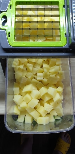I got this as a Christmas present for my husband for Xmas. I was actually the first one to try it out. I made fried diced potatoes with our dinner tonight and decided to try out the chopper to save time. I'm in love with it and will probably end up using it more than he does. I was able to chop 3 large potatoes in less than 2 minutes. It's also very easy to manually clean and can go in the top rack of the dishwasher which I love. Overall a wonderful addition to the kitchen and I'm so happy I found it.