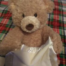 The peek a boo bear was an adorable addition to my 6 month old's collection of stuffed animals. The game of peek a boo is one of her favorites but, she is quite the aggressor LOL. She no longer wished to play the game with the bear and decided she wanted his blanket. Mr. Bear went to cover his eyes and my 6 month snatched his blanket from detaching it from one of his cute unsuspecting paws. It's an easy fix. The voice over is so precious. It would be awesome if there was an option to order the bear with your child's name in place of "baby." I'd definitely order this product for future babies in my family. It's a keeper. Thank you for producing an adorable keepsake!!