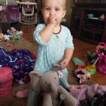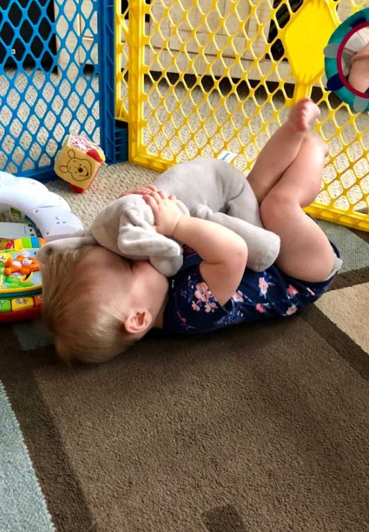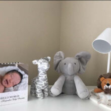 I found this elephant on lightening deal and it had great reviews. I decided to get it for my newborn and she loves it. I use it for when I change her diaper. it sings a song and also plays hide and seek. It’s ears come down over its eyes and then back to normal. It is very cute and babies love it! It is a decent size as well.