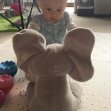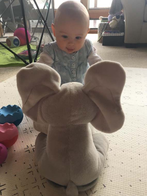 My 14 month old loves playing peek a boo so when I saw this, I knew I had to buy it for Her. I can’t decide if she loves it more Or if I do. Haha!! It’s so adorable and really nice quality and a good size. She gives the elephant hugs all day long and giggles when the ears move. This was the perfect toy for her!