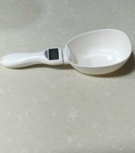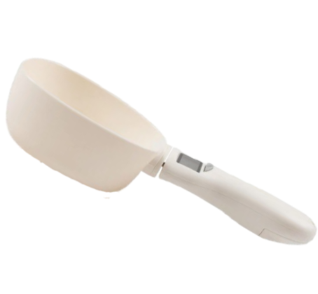 Our Pet Food Measuring Spoon With LED Display is made from sturdy ABS plastic, and the actual serving scoop is detachable for easy cleaning.