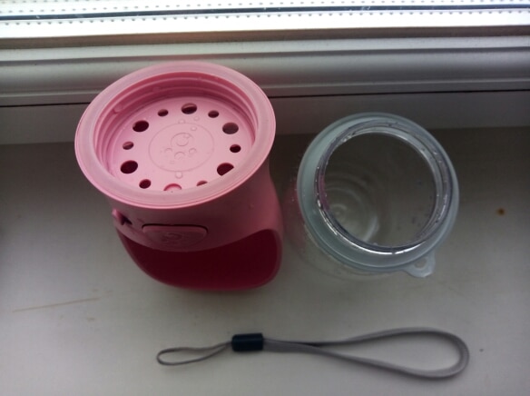I really like this product but cannot give it a 5 star review as it is not as advertised. It does not hold 12 ounces only 10 ounces. I end up carrying another water bottle as my girl can empty this in one big gulp. I like the fact that if there is any water left it is not wasted. I have contacted the vendor to see if there is a bigger container available and to let them know that it is false advertising but they have not responded. I have not been able to find a bigger container on line yet. I will keep looking.