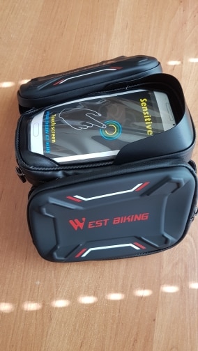 Great bag! Sturdy & doesn't rattle when off road. This was one of the only bags that I could find to fit my folding E-bike. Works great & is sensitive enough to use a touchscreen through it.