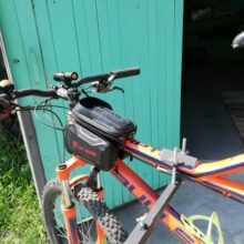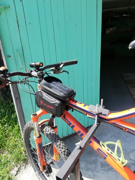 Overall it’s a great idea! I have a 26” mountain bike and I’m 5 8”. When I ride my knees hit the sides of the pouch. It’s also difficult to see the screen of your phone while riding.
