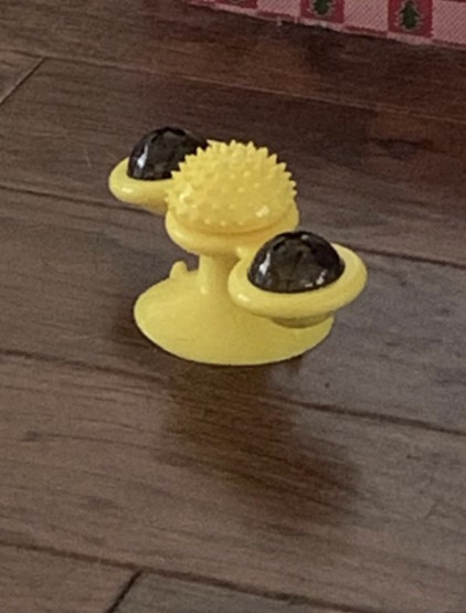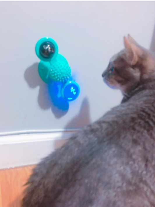 My cat just loves this toy! We have it on the window by our bathtub and she’s always running to spin the toy. She even rubs her head on the center to itch her head which she never does with other cat toys. I love the little blinking ball that goes inside one of the sides of the spinners. My cat will watch the lights blink and go back to spin the toy so they will blink again. Definitely keeps her interest and worth every penny! Highly recommend!